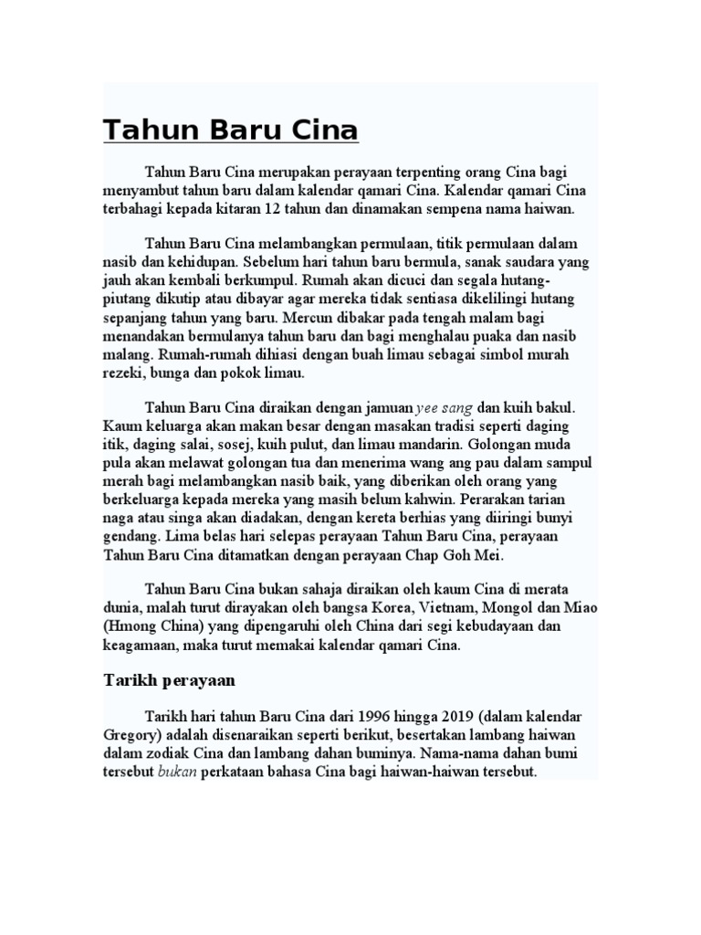 Kepentingan sektor pertanian kepada negara. Sejarahasal usul perayaan upacara khusus dalam perayaan. Contextual translation of contoh karangan tahun baru cina into english.